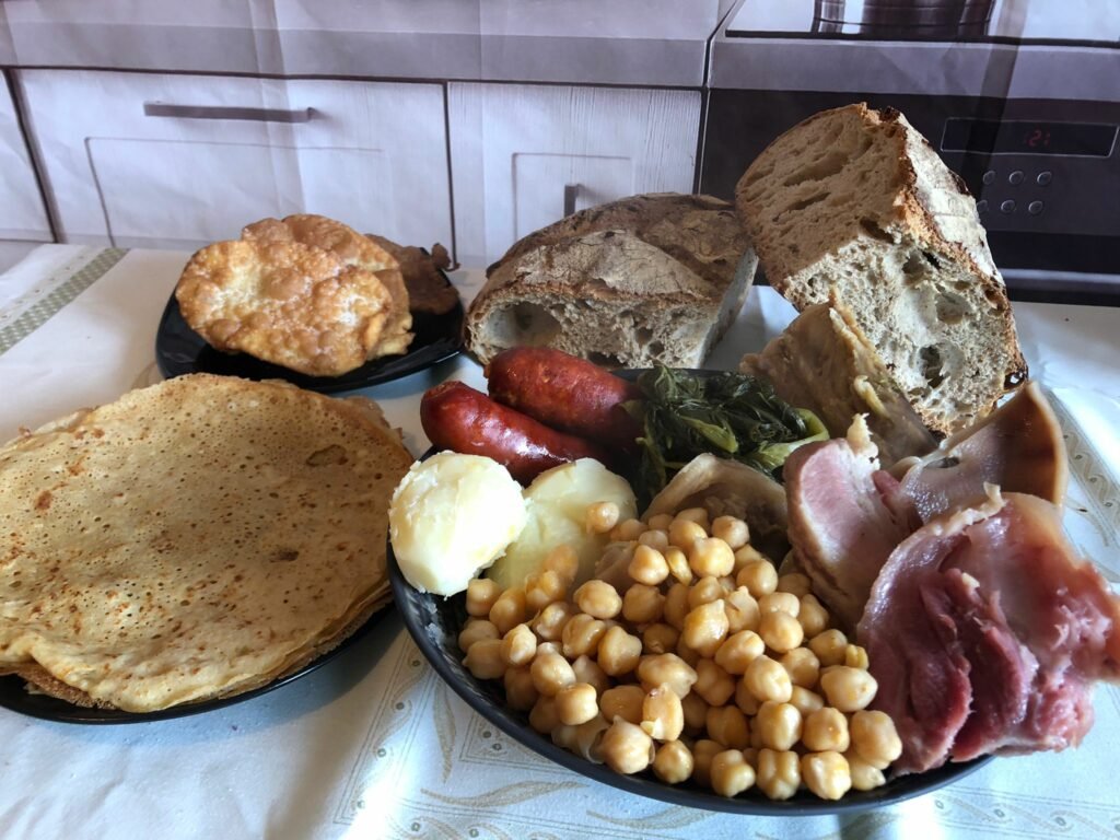 - Yo saco los grelos y las patatas, a una fuente, los garbanzos en otra y en otra la carne y los chorizos, esto ya es a gusto de cada uno, incluso hay a quien le gusta poner la carne ya cortada.